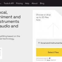 AI를 활용해 음악에서 보컬과 악기 트랙을 분리해주는 온라인 스템 분리 도구입니다.