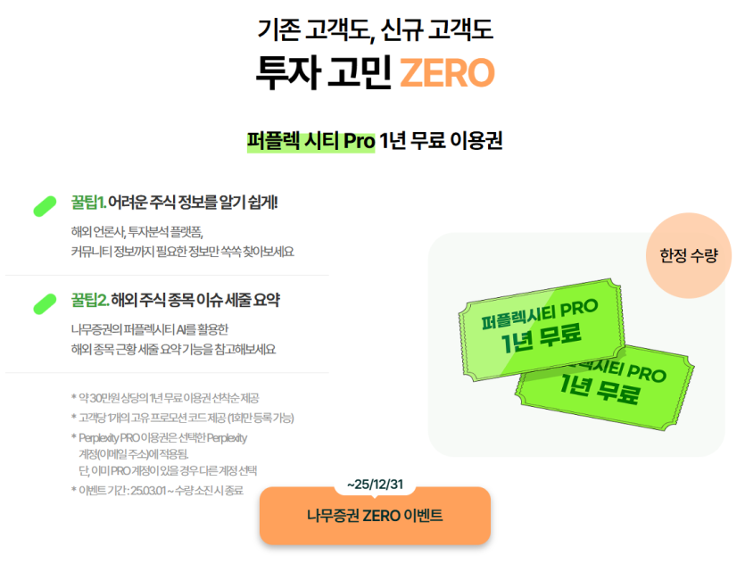 나무증권에서 퍼플렉시티 프로 1년 무료 이용권 이벤트 하고 있어요